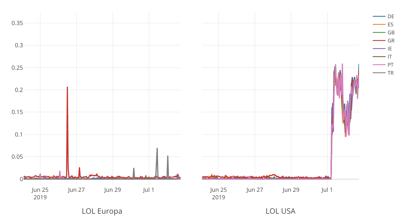 The following graphs show the interruption that League of Legends USA servers suffered (which are the same servers used for TFT). The information has been obtained from MedUX devices deployed worldwide.