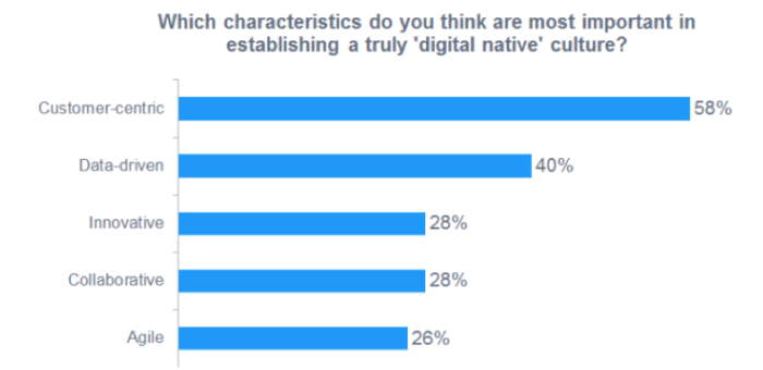 According to a research performed by Econsultancy, customer centricity was the leading answer when companies where asked about the most important characteristic in order to establish a truly “digital-native” culture.